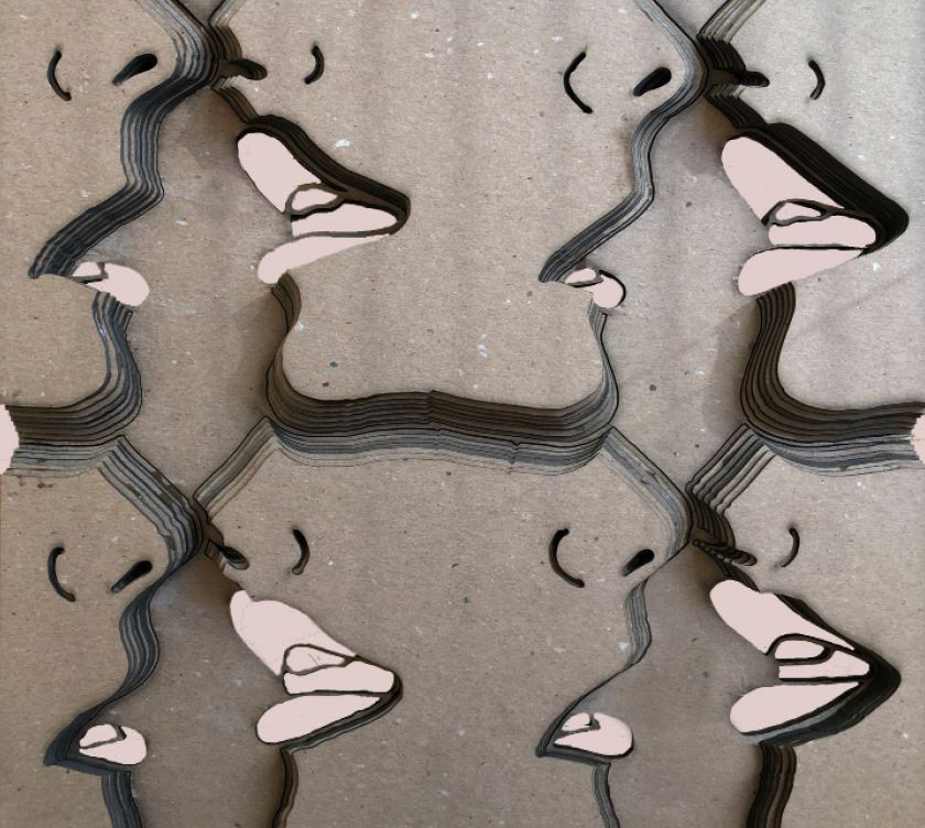 The image to the right is my final iteration of “Mutually” which is constructed out of cardboard and is 12”x12” with a depth of 1.75”.